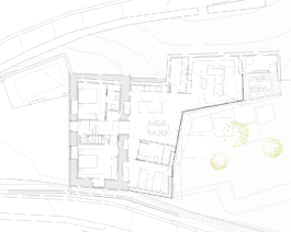 El esquema de distribución de la casa resultante huye de una compartimentación excesiva y permite obtener el máximo aprovechamiento de la superficie. El área de día se ubica en el volumen nuevo, en donde originalmente estaban las construcciones de uso agrícola, abriéndose a la zona más privada de la parcela, orientada al sur, obteniendo así iluminación natural a lo largo de prácticamente todo el día. La cubierta vegetal, que se encuentra completamente enterrada, junto con el adecuado soleamiento descrito, permitirá conseguir un adecuado control bioclimático de la edificación.